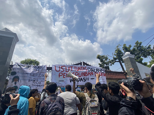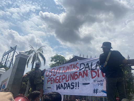 Wetub juga menuturkan alasan kembali mengadakan aksi di BBWS-SO. Menurutnya, BBWS-SO merupakan instansi negara yang memprakarsai penambangan batu andesit di Desa Wadas. “Instansi ini juga yang membuat Wadon Wadas mengalami kriminalisasi dan intimidasi,” jelas Wetub.