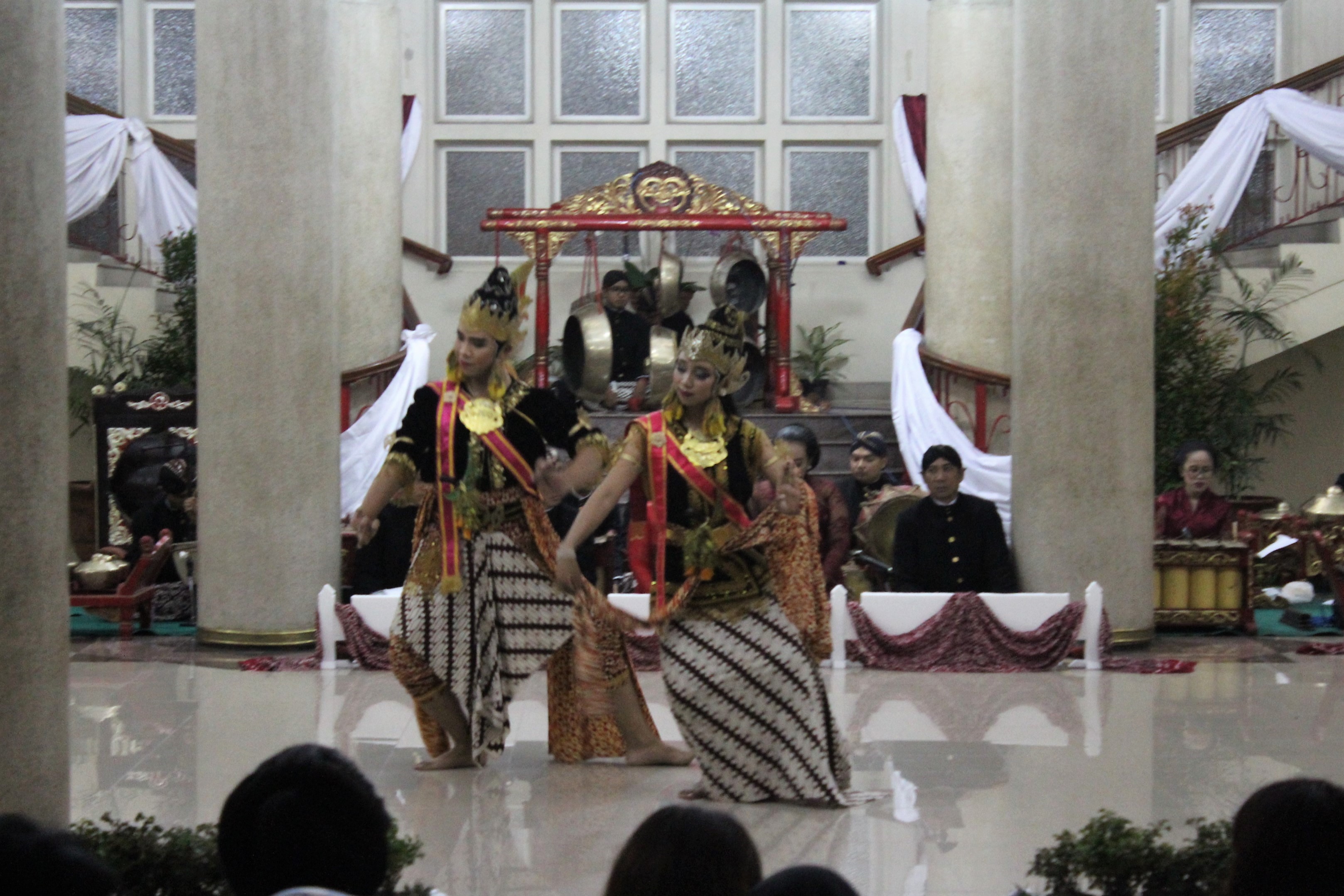Area pertunjukan yang diterangi lampu putih dari pilar-pilar di Balairung kini menjadi cerah. Ini disebabkan oleh kehadiran para penari Retna Asri yang berkebaya merah jambu. Dengan iringan gamelan, mereka masuk ke area pertunjukan dengan posisi diagonal. Posisi ini juga cukup mendominasi blocking dari tarian ini. Perlahan-lahan, sembilan penari perempuan ini memainkan selendang kuning dengan motif batik di ujungnya. Pandangan mata mereka seolah selalu diarahkan ke jari-jari tangan yang dengan lentik berputar di depan tubuh mereka. Tari berdurasi sekitar tujuh menit ini menggambarkan putri yang beranjak dewasa. Setiap gerakannya yang hati-hati pun melambangkan gadis remaja yang mulai menatap jauh ke depan, mencari jati diri dengan penuh percaya diri.